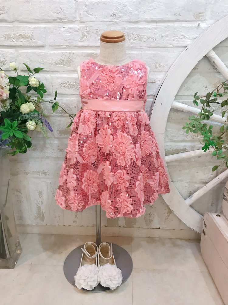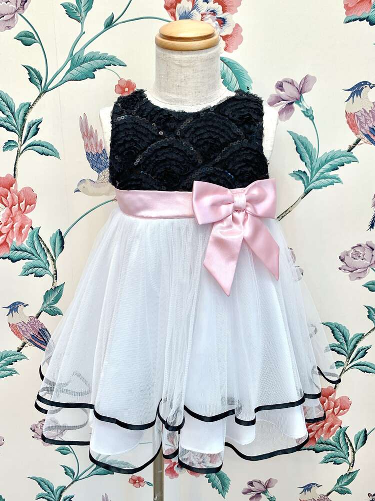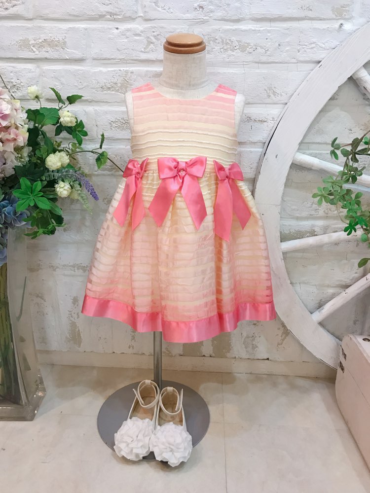 ホワイトウエストピンクコサージュキッズドレス【2...