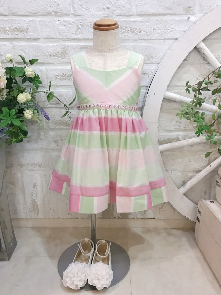80〜90cmピンク×ミントグリーンボーダードレ...