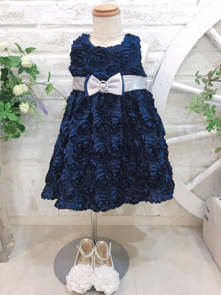 ネイビー光沢なしキッズタキシード2ピース(ジャケット・パンツ・タイ付)90cm