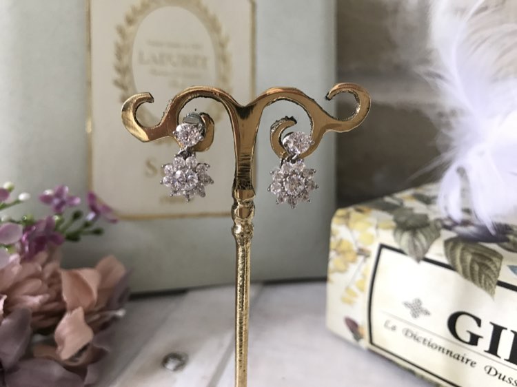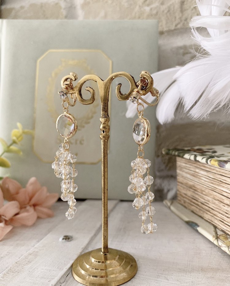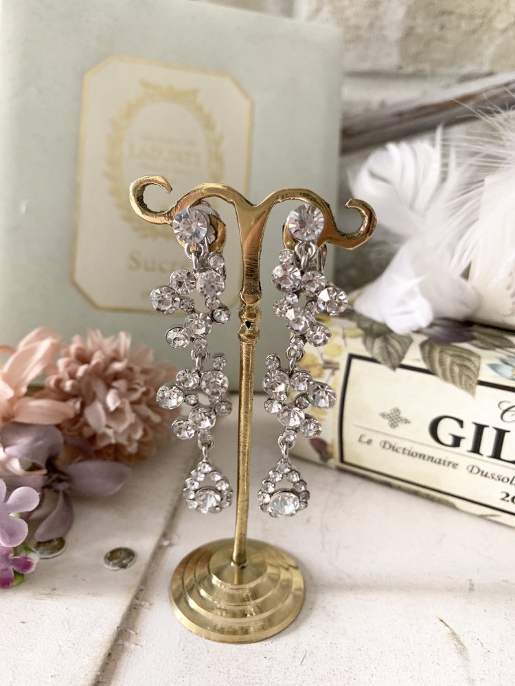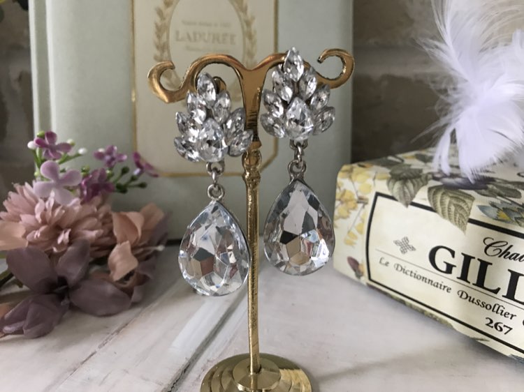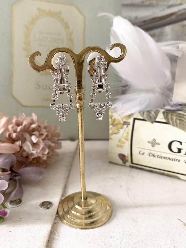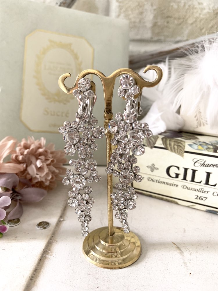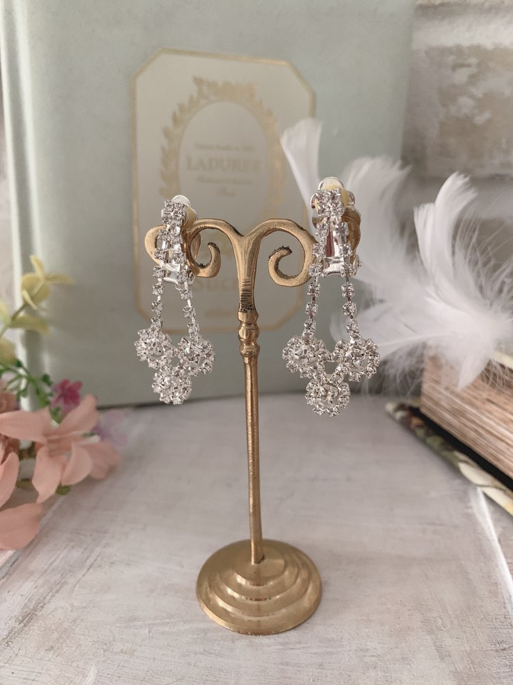 シルバー大粒ビジュー小粒ビジュー枠ドロップイヤリング