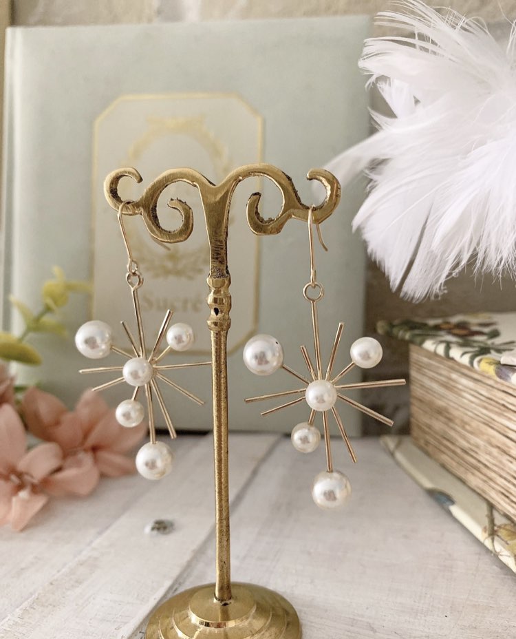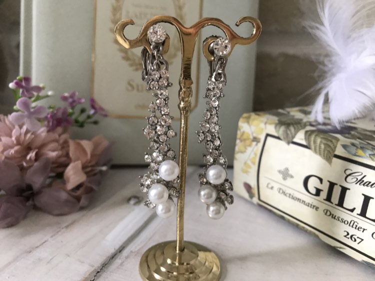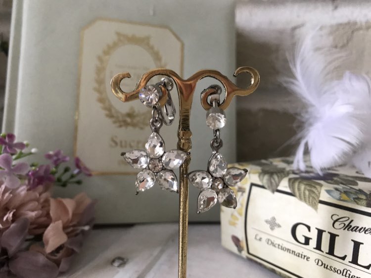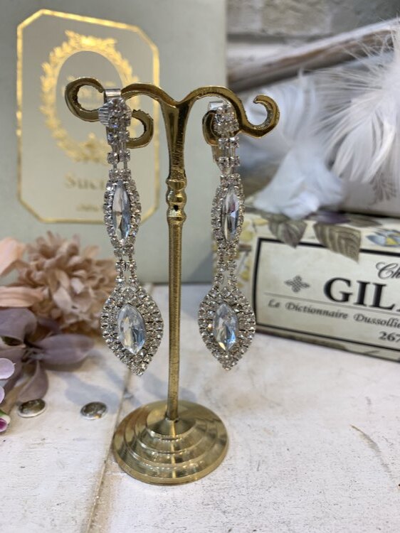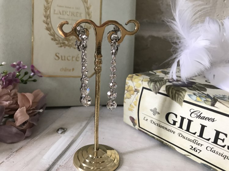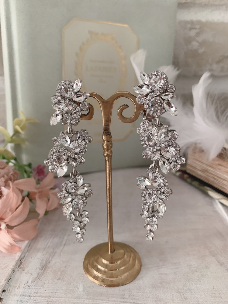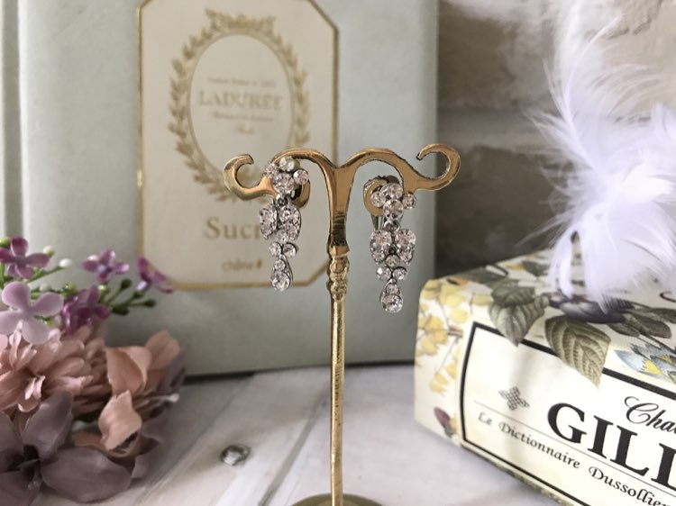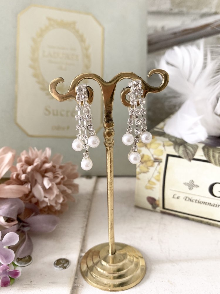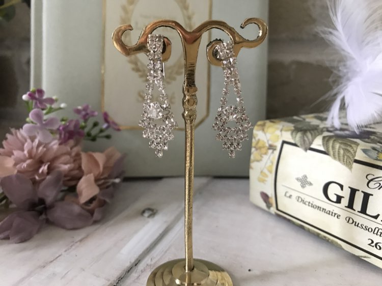 シルバー大粒ビジュー小粒ビジュー枠ドロップイヤリング