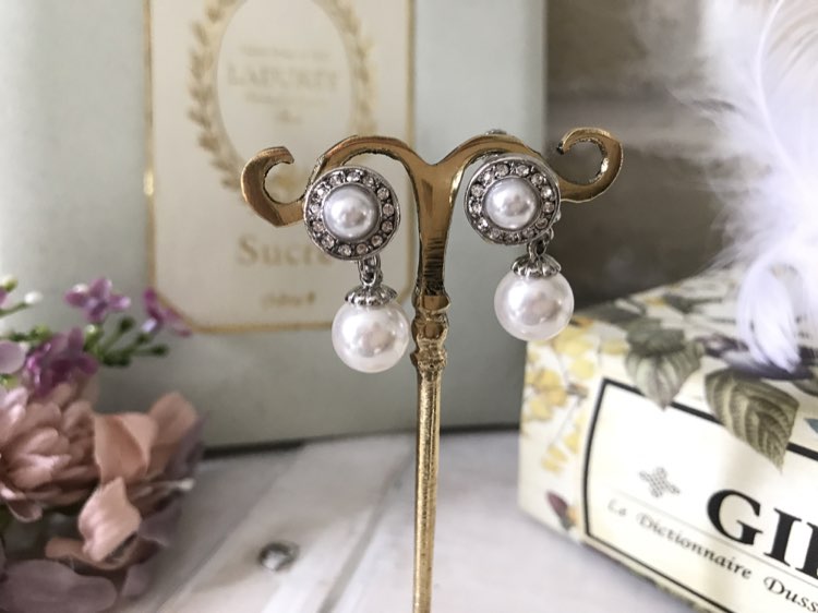 シルバー一粒パール付き小ぶりダイヤじゃらっとイヤリング