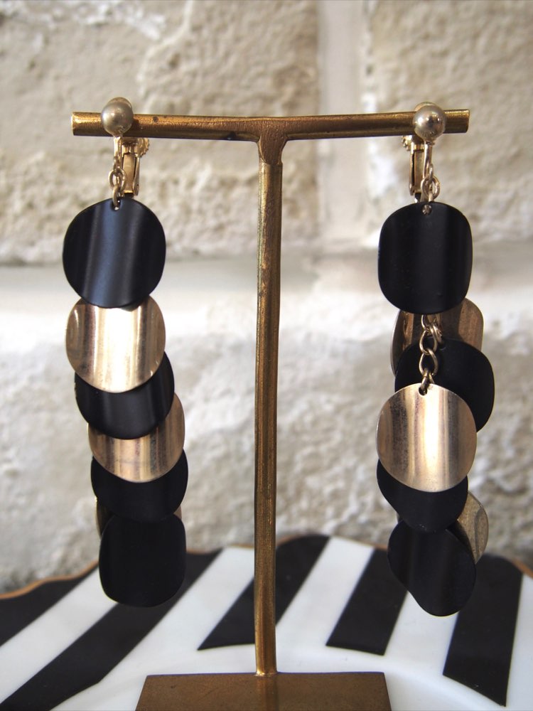 ブラック×ゴールドウェーヴィーパネルイヤリング