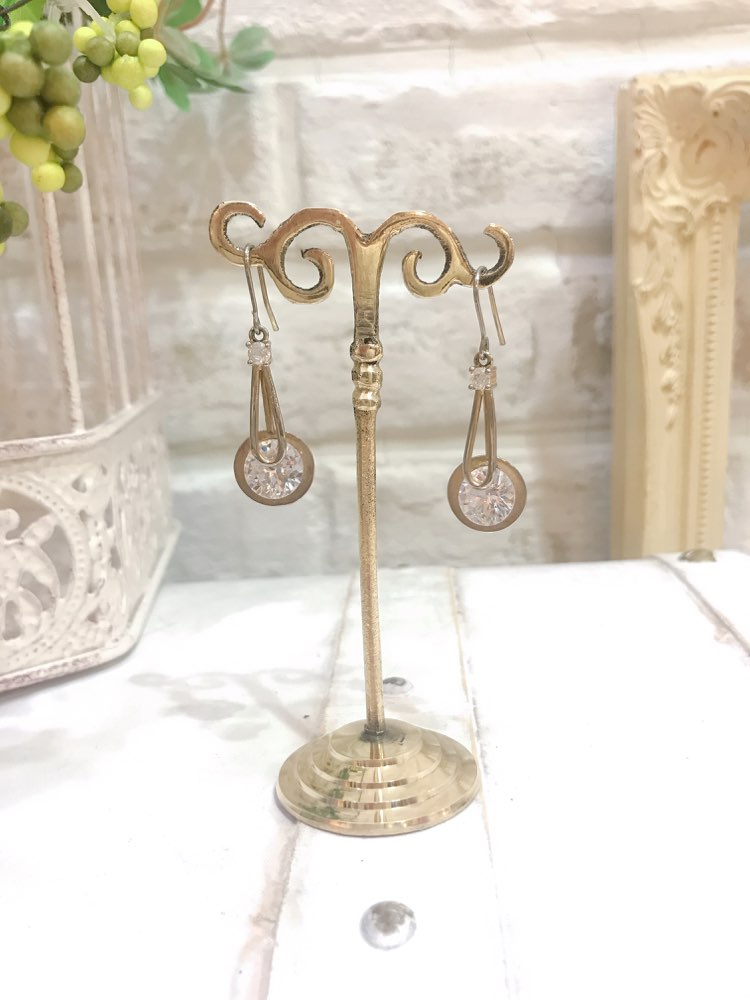 ブロンズストーン×しずく型クリスタルストーンピア...