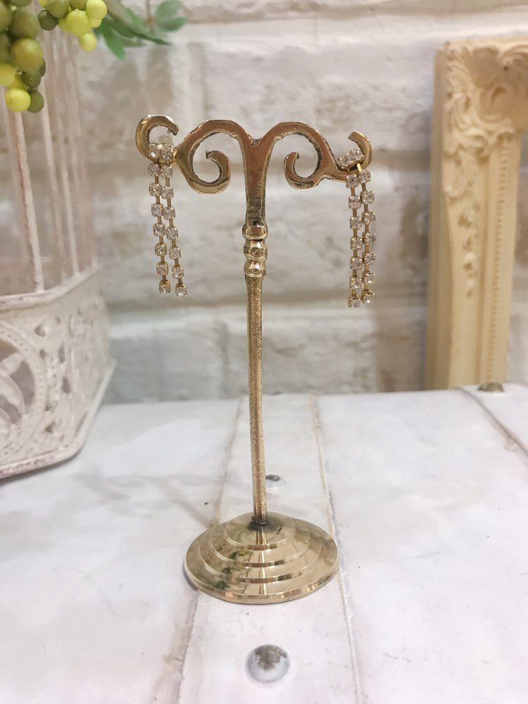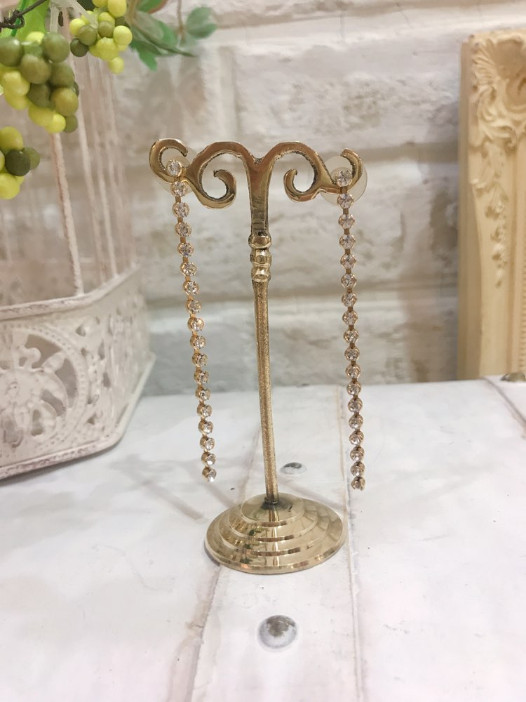 ゴールドチェーン3本ダイヤ付きゆれるピアス