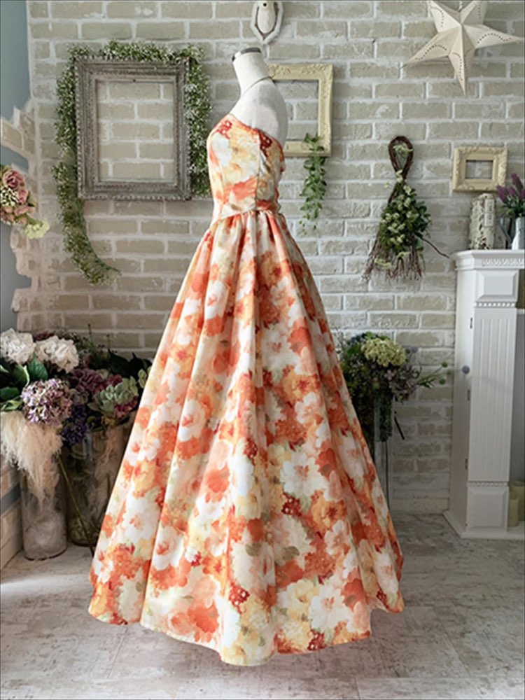 フラワープリントオレンジドレス