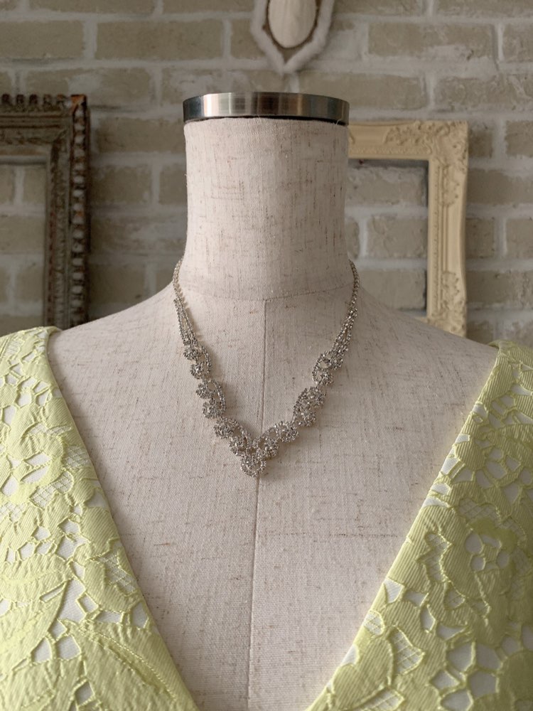 小粒パール×ビジューシンプルシルバーT字ネックレス