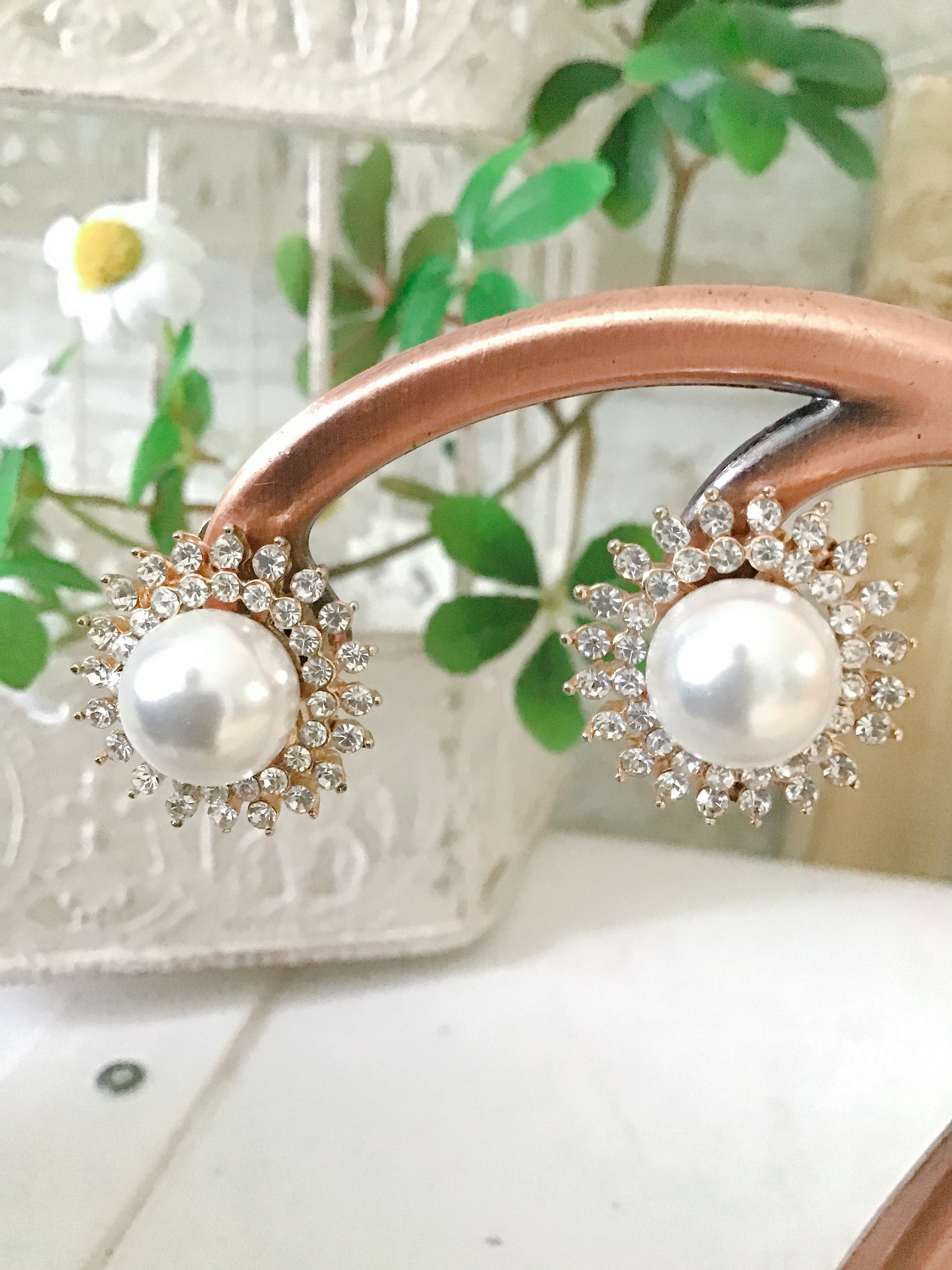 ビジュー×一粒パールイヤリング