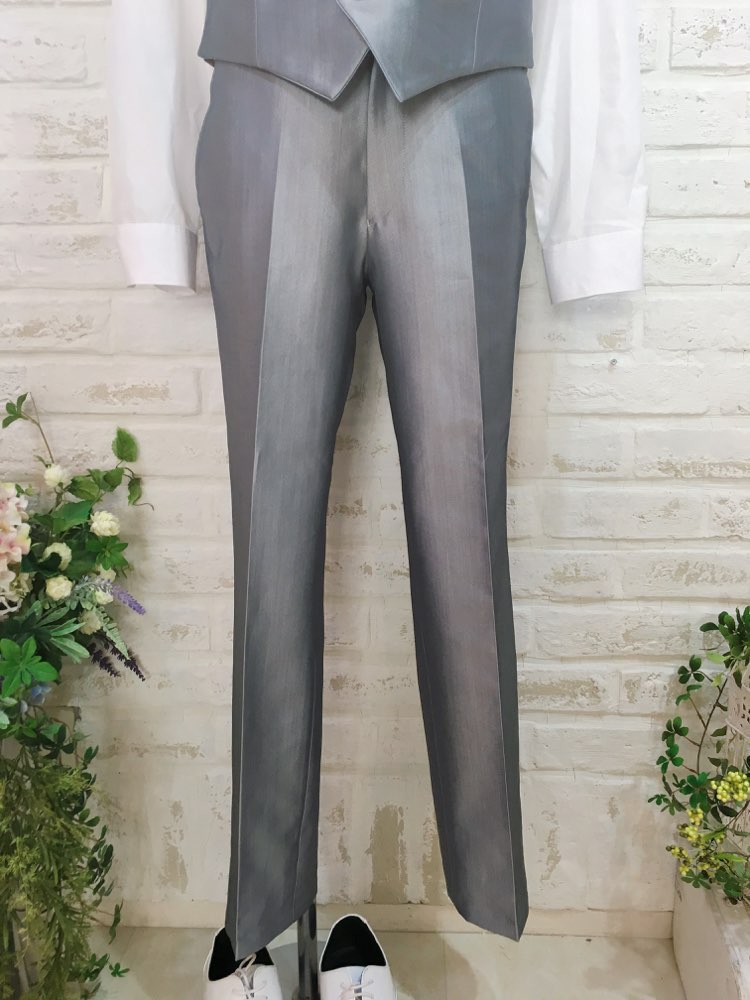 黒パイピングタキシードセットシルバーパンツS