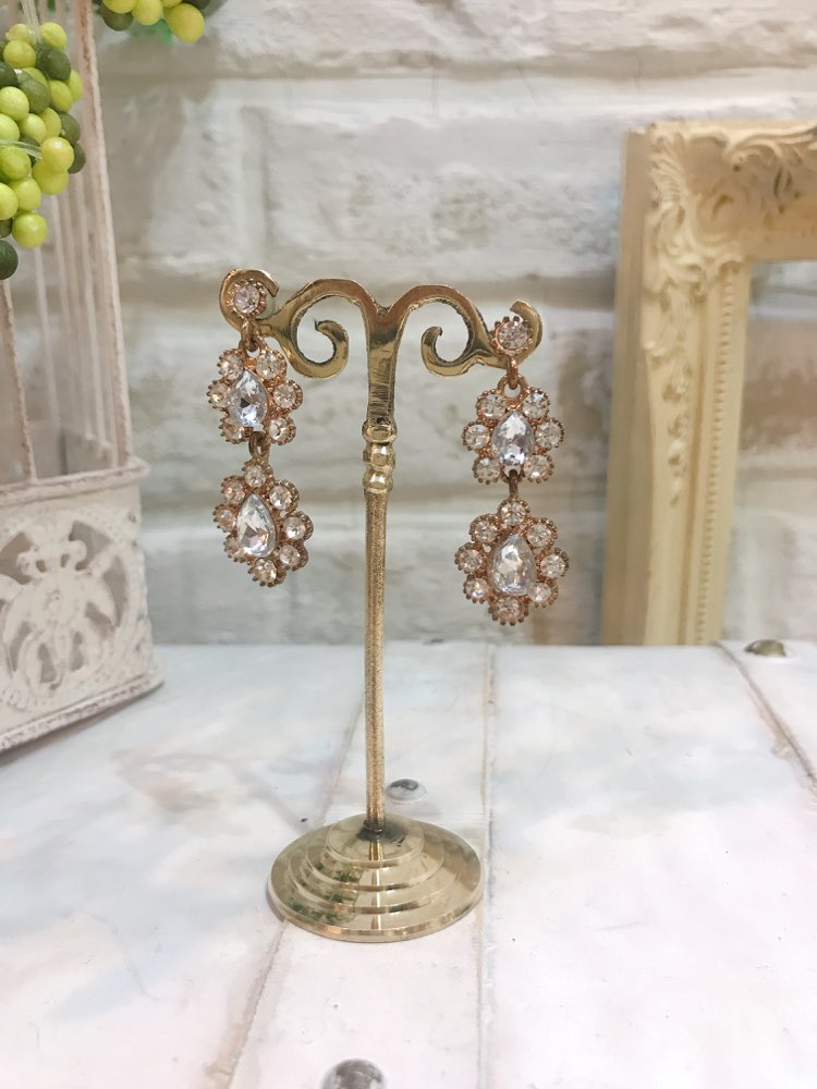 ゴールドチェーン3本ダイヤ付きピアス