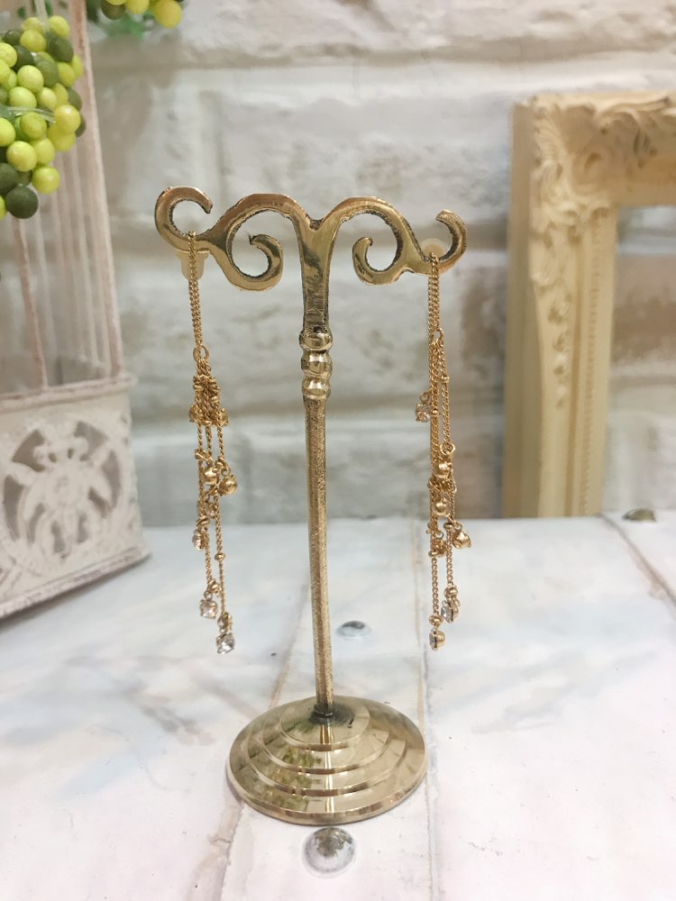 ゴールドチェーン3本ダイヤ付きゆれるピアス