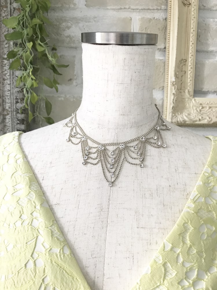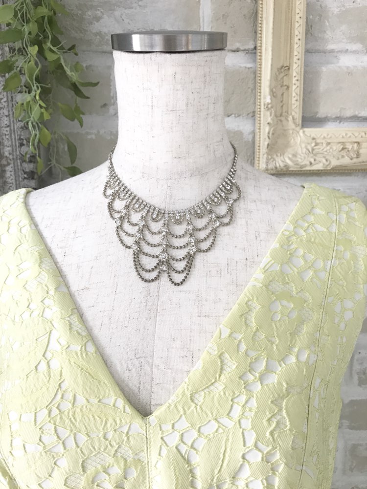 シャンデリア風シルバーチェーン×シルバーダイヤネックレス