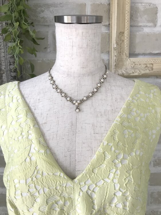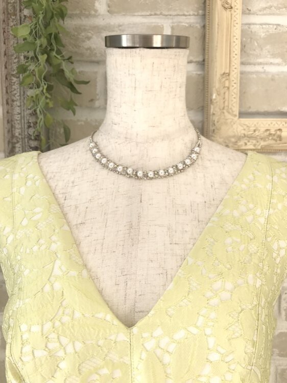 小粒パール×ビジューシンプルシルバーT字ネックレ...