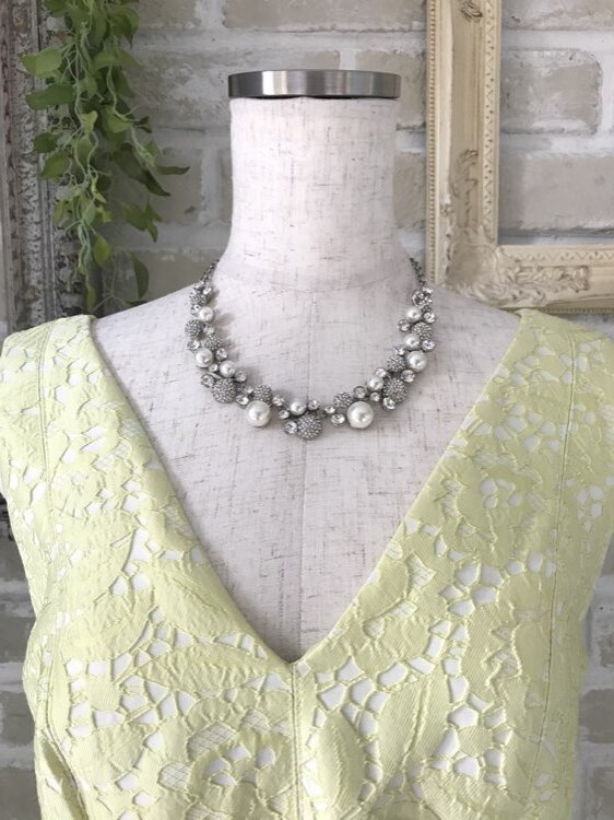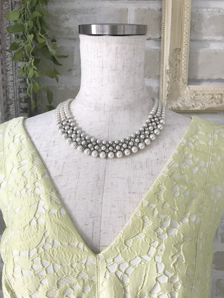 小粒パール×ビジューシンプルシルバーT字ネックレス