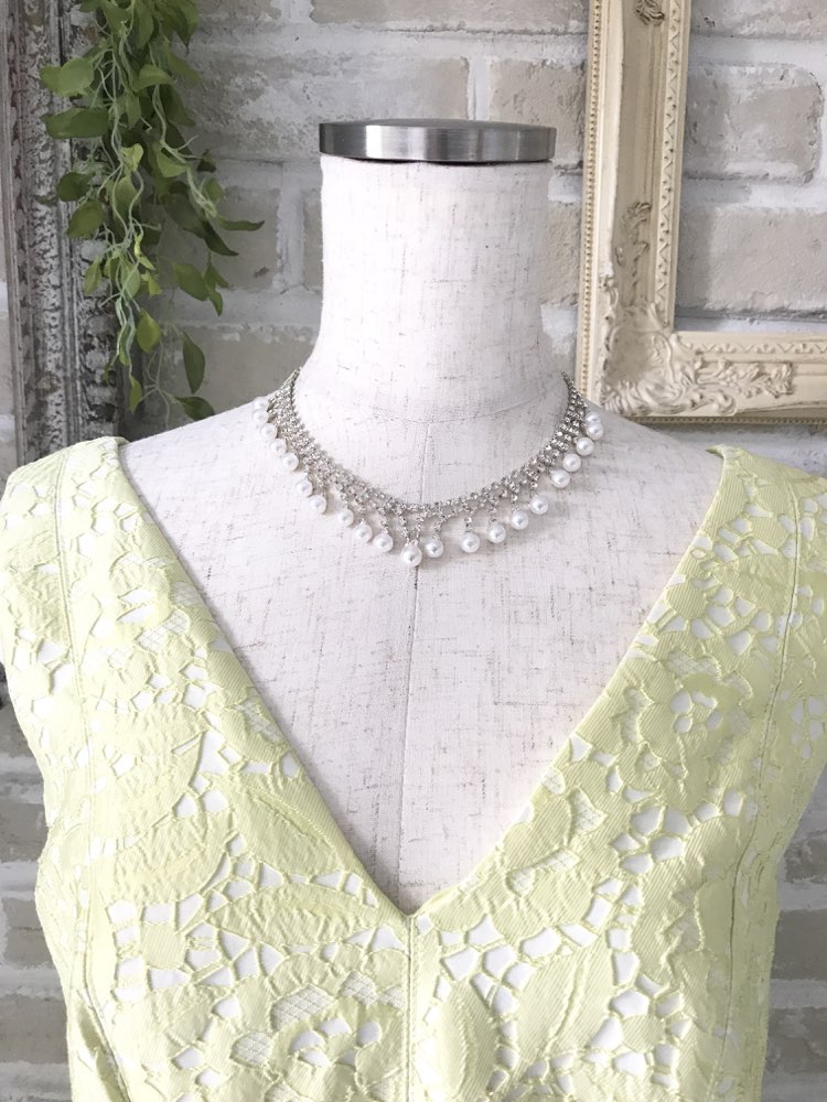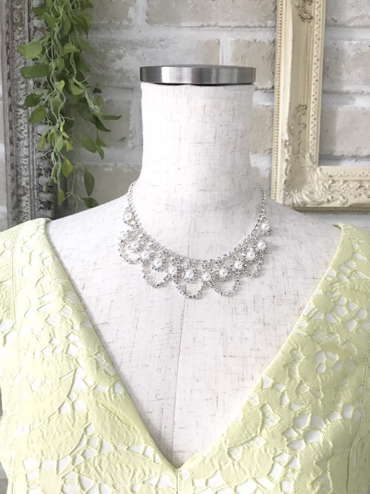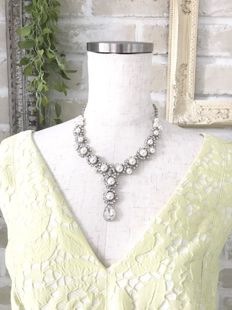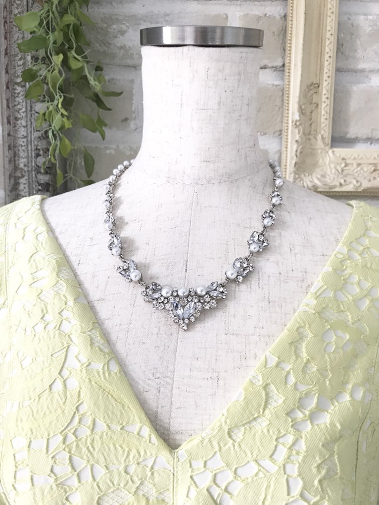 小粒パール×ビジューシンプルシルバーT字ネックレス