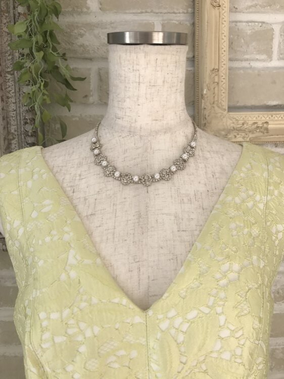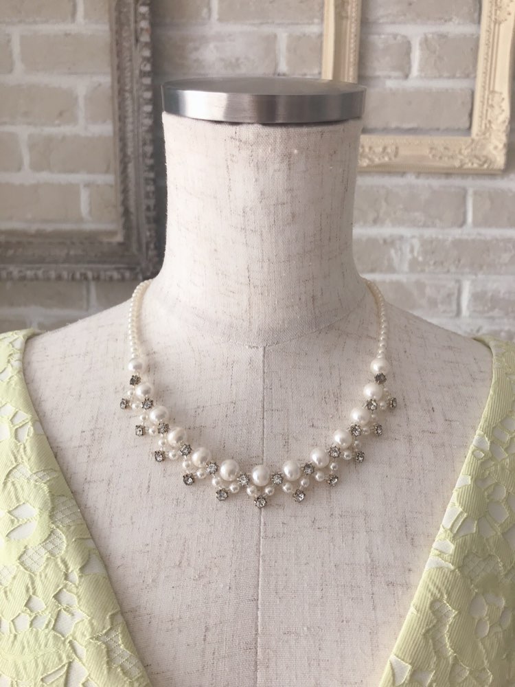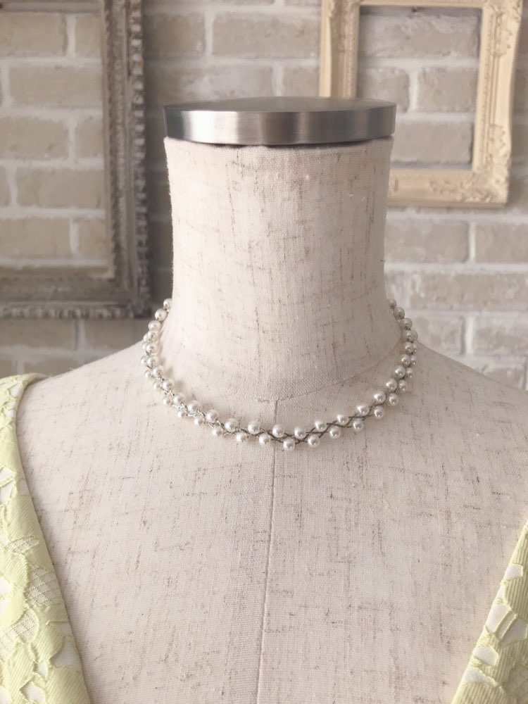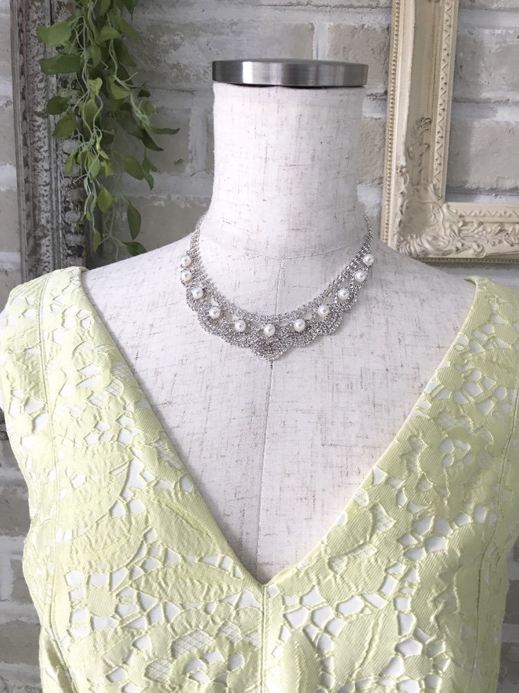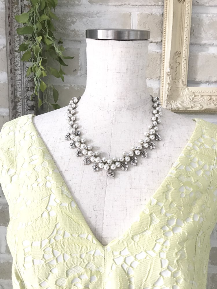 小粒パール×ビジューシンプルシルバーT字ネックレス