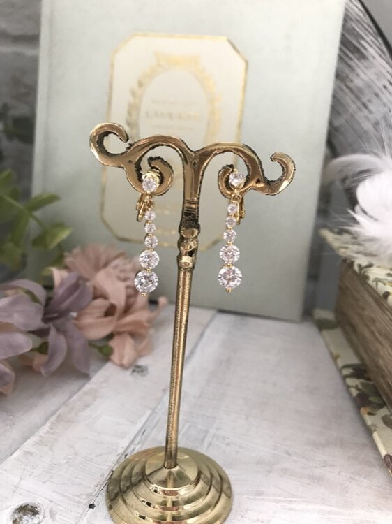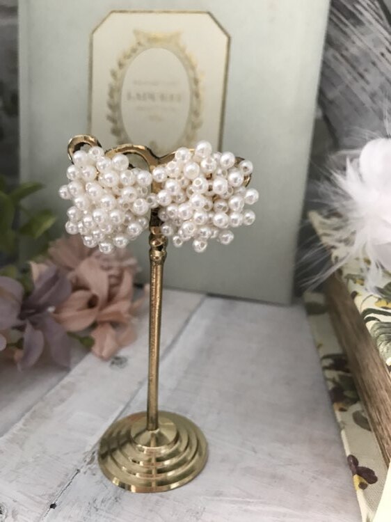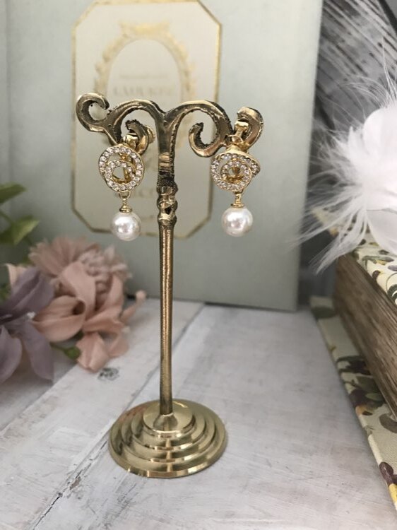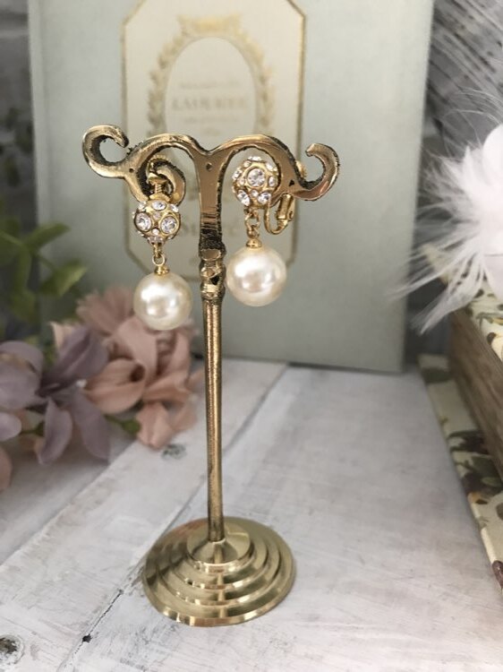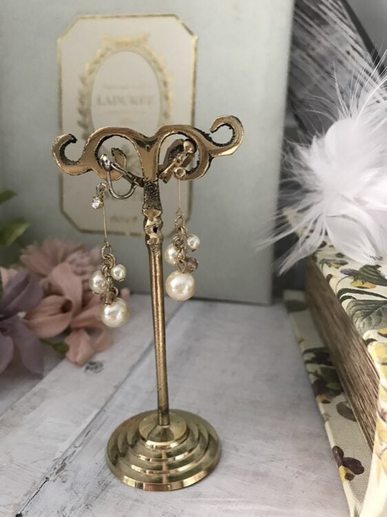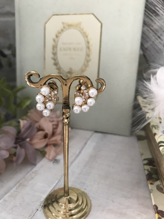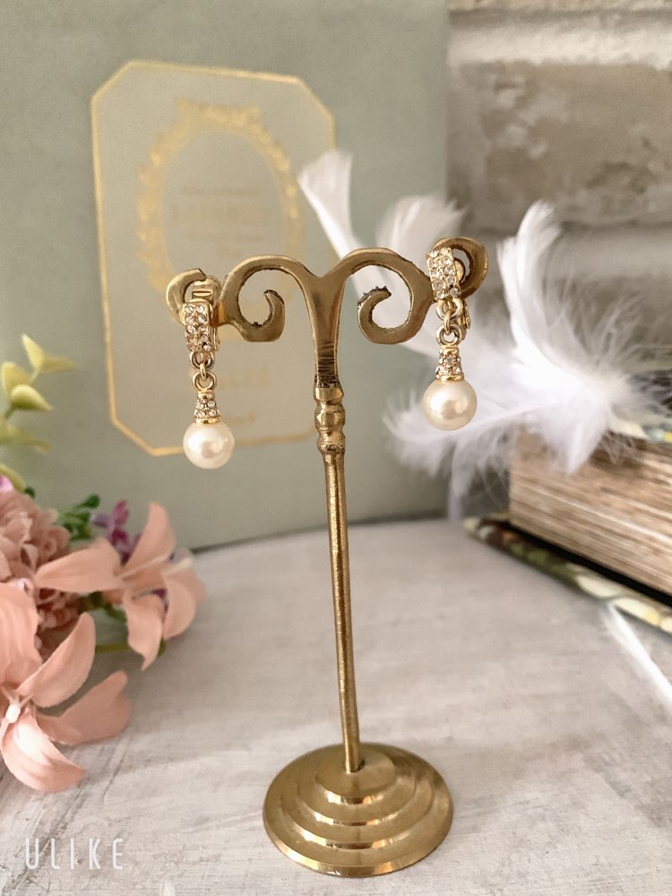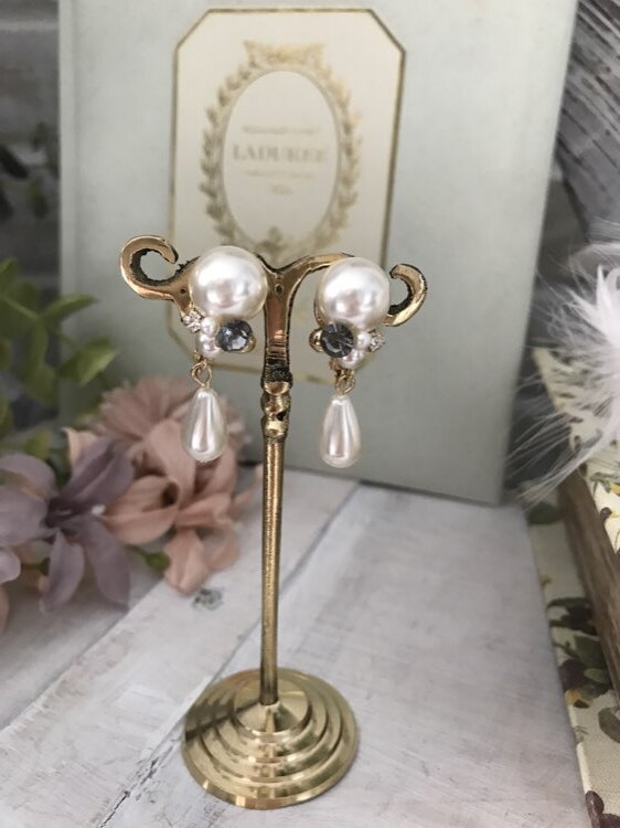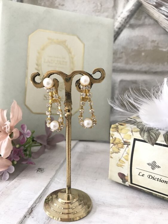 ゴールドしずく型ビジュー小粒パールイヤリング
