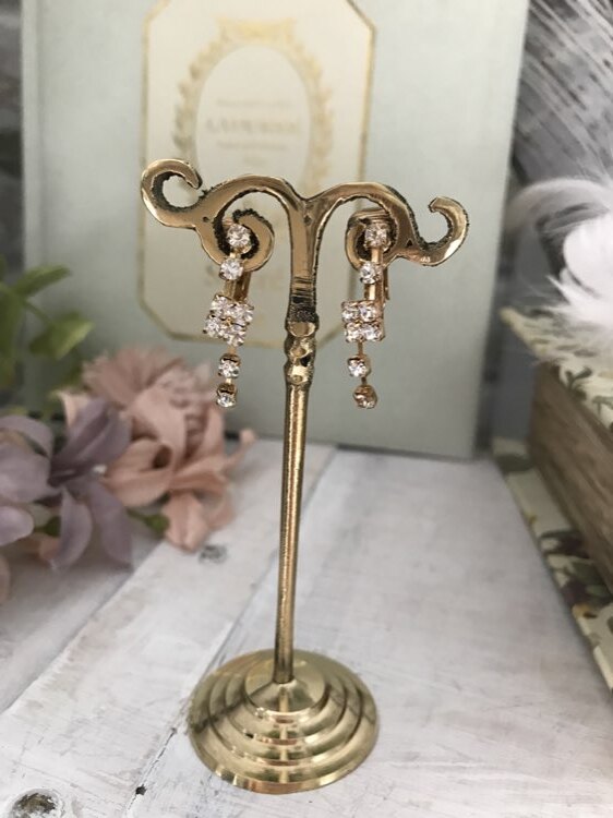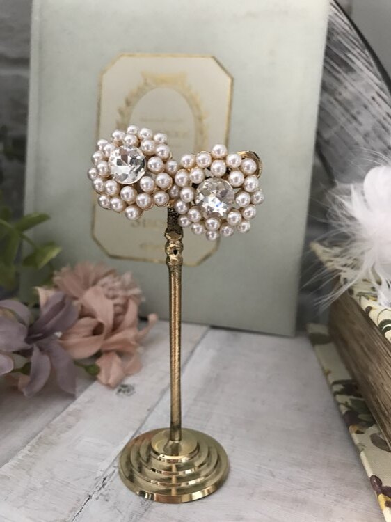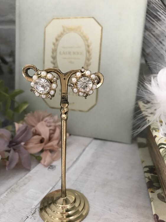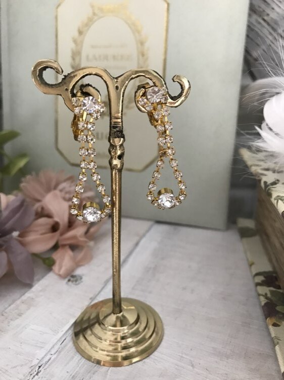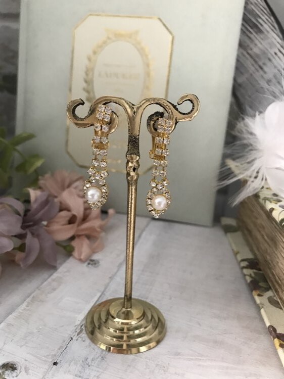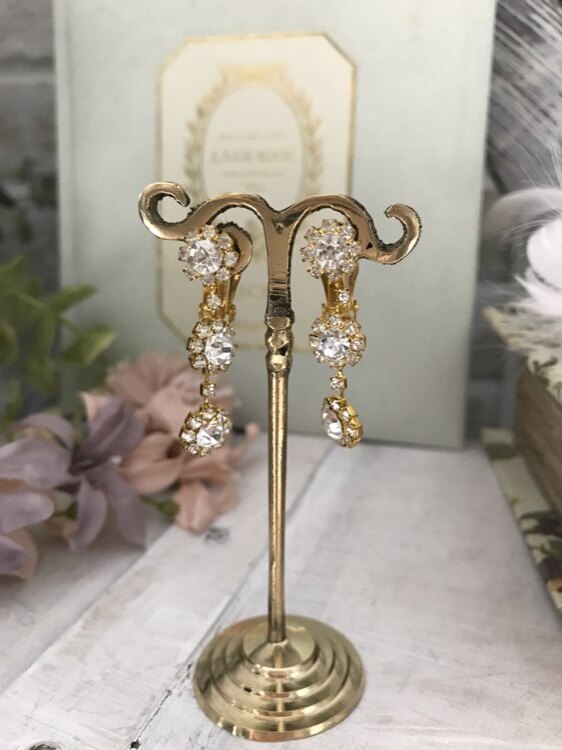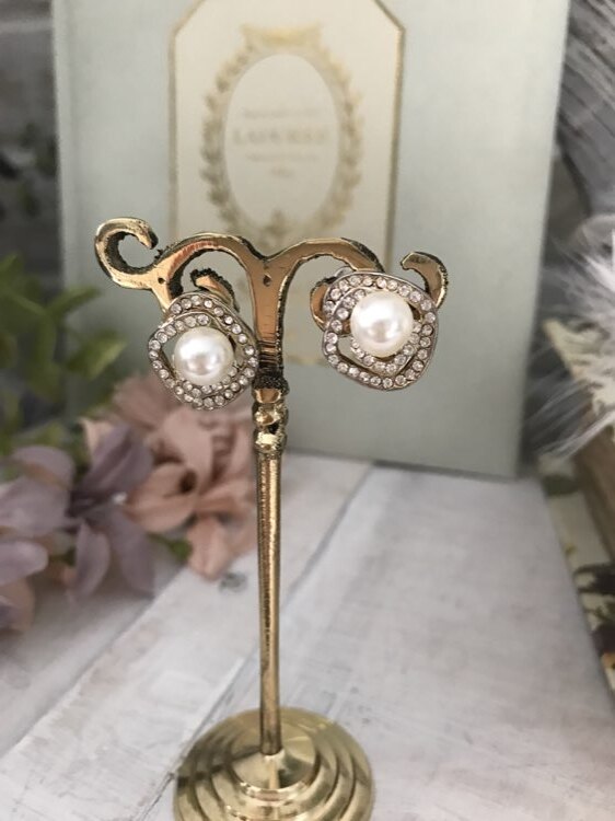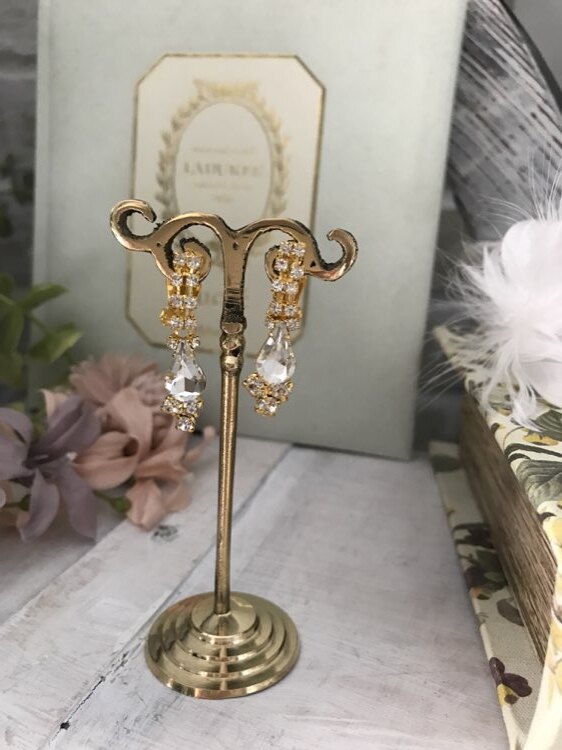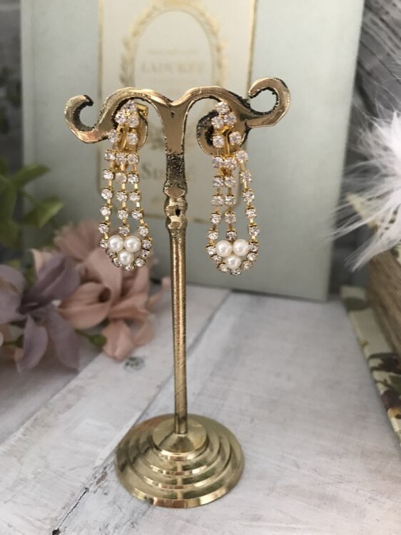 ゴールドしずく型ビジュー小粒パールイヤリング