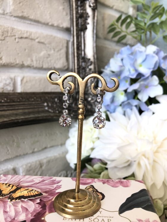 シルバーストーンダイヤ型垂れ下がりイヤリング