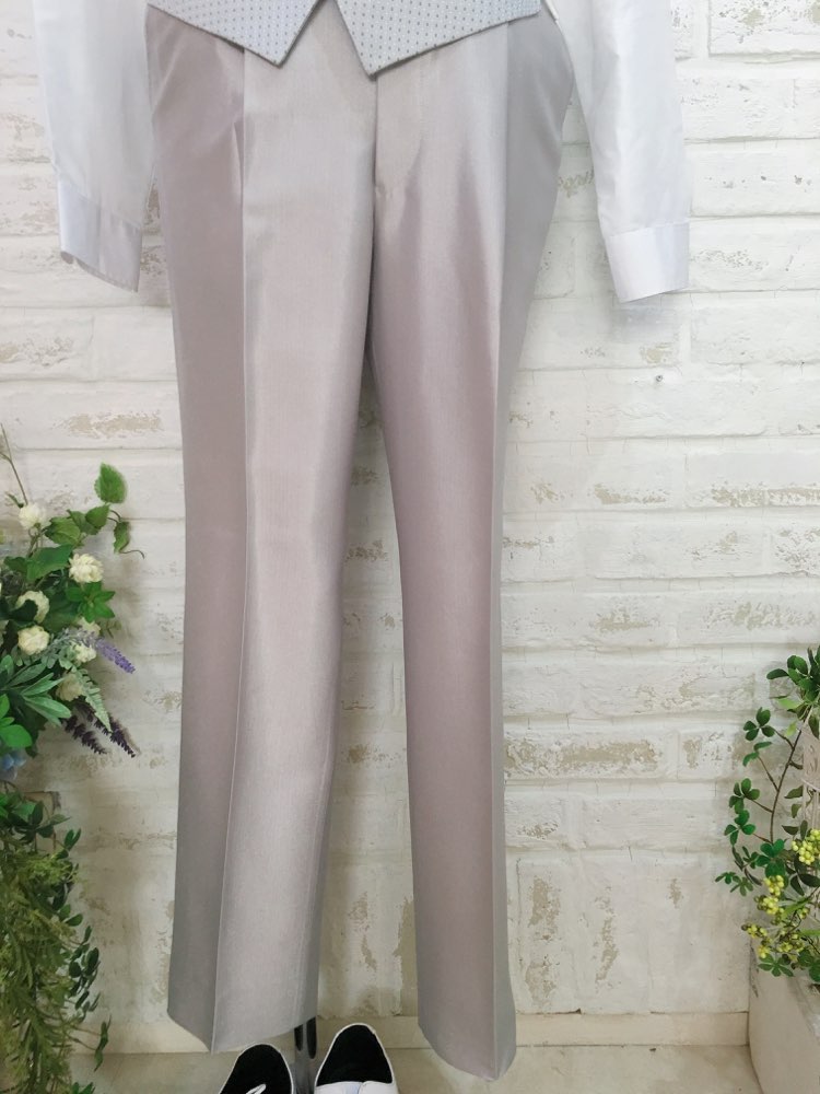 ホワイト×シルバーパイピングタキシードセットパンツS