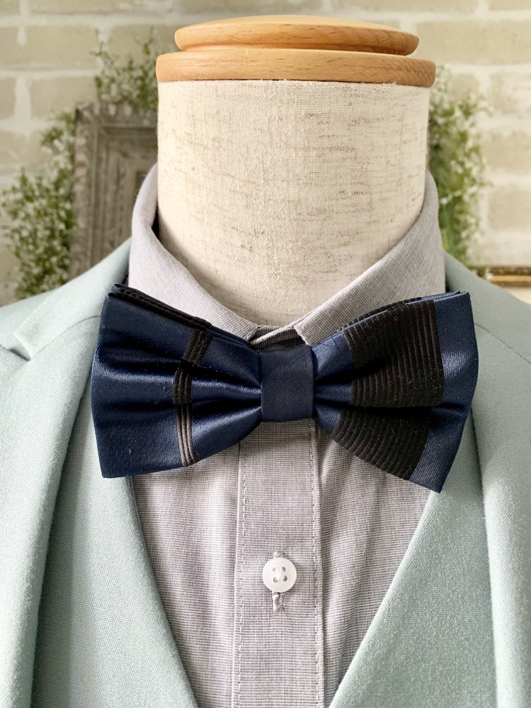ネイビー×ブラックラインチョウネクタイ