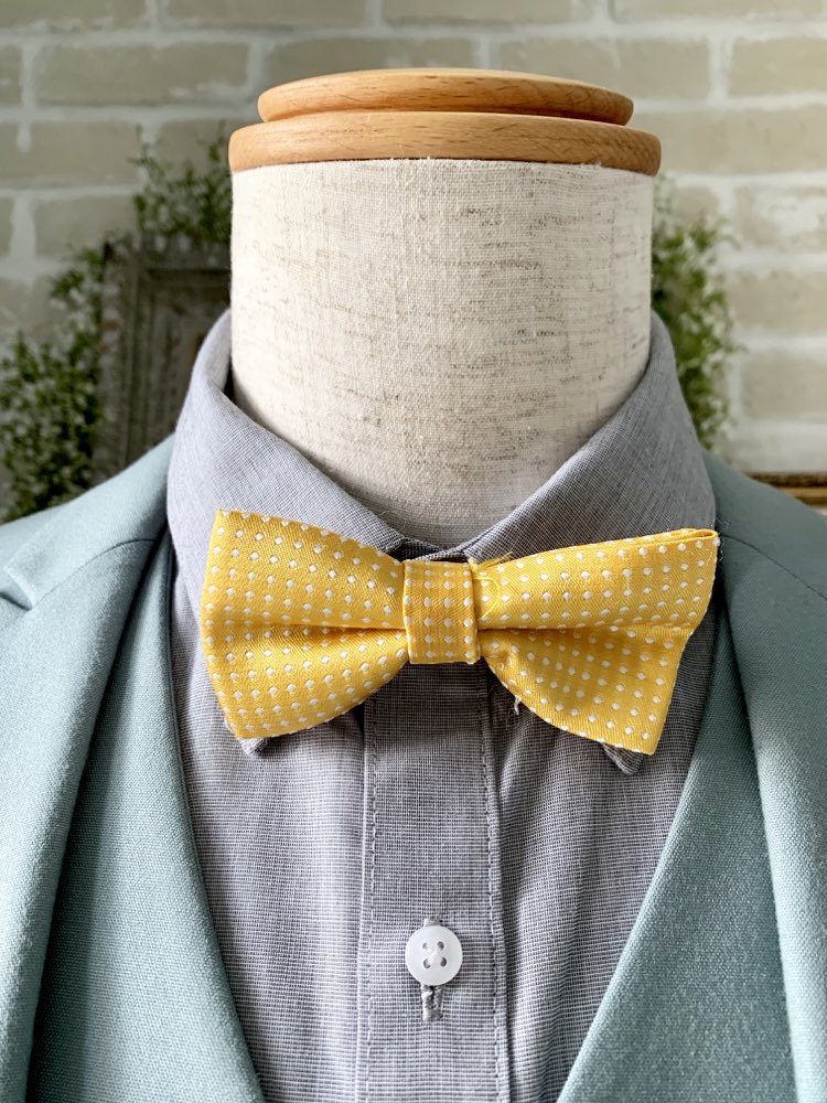 イエロー白ドットチョウネクタイ