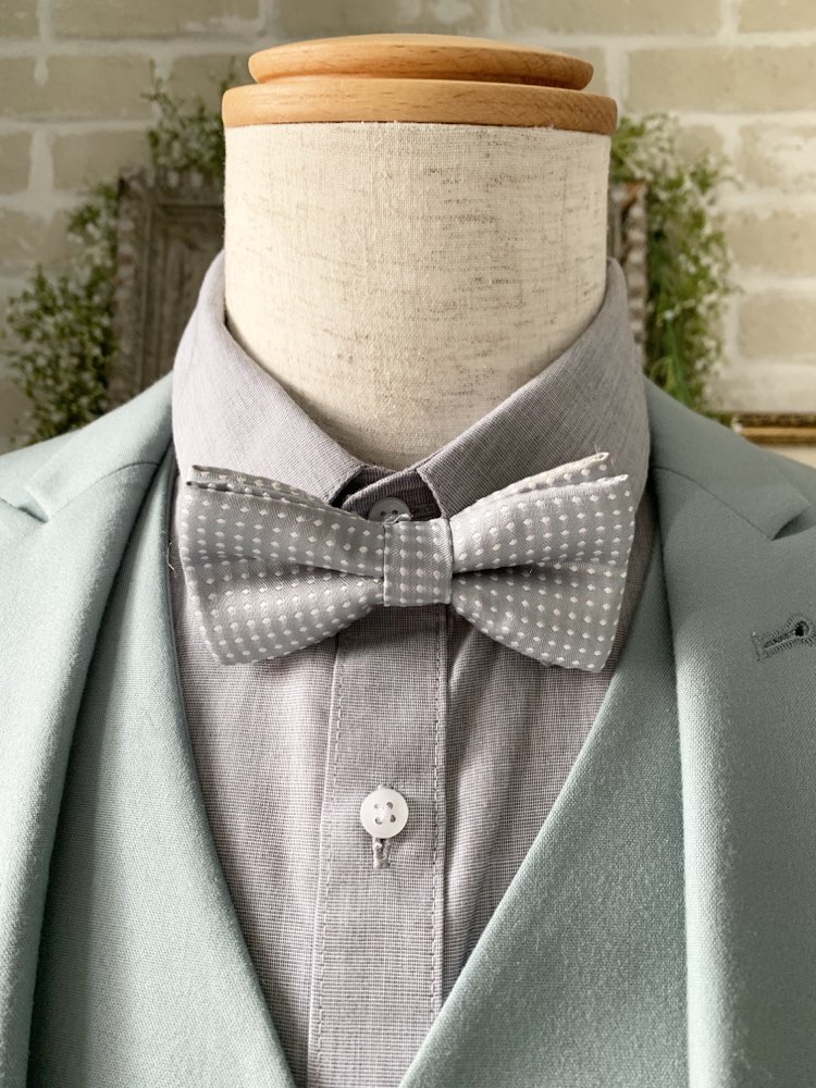 グレー白ドットタイBチョウネクタイ