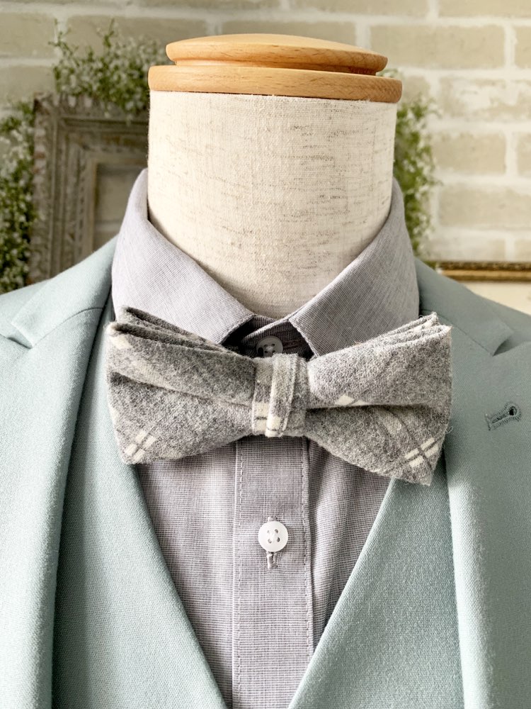 asosグレーチェックウールチョウネクタイ