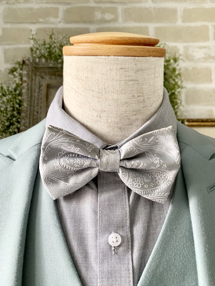 シルバーペイズリー柄チョウネクタイ