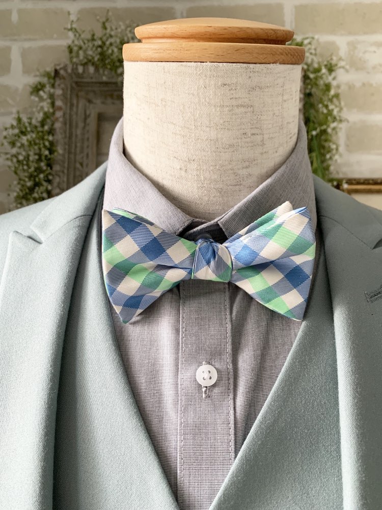 グリーンブルーチェックチョウネクタイ