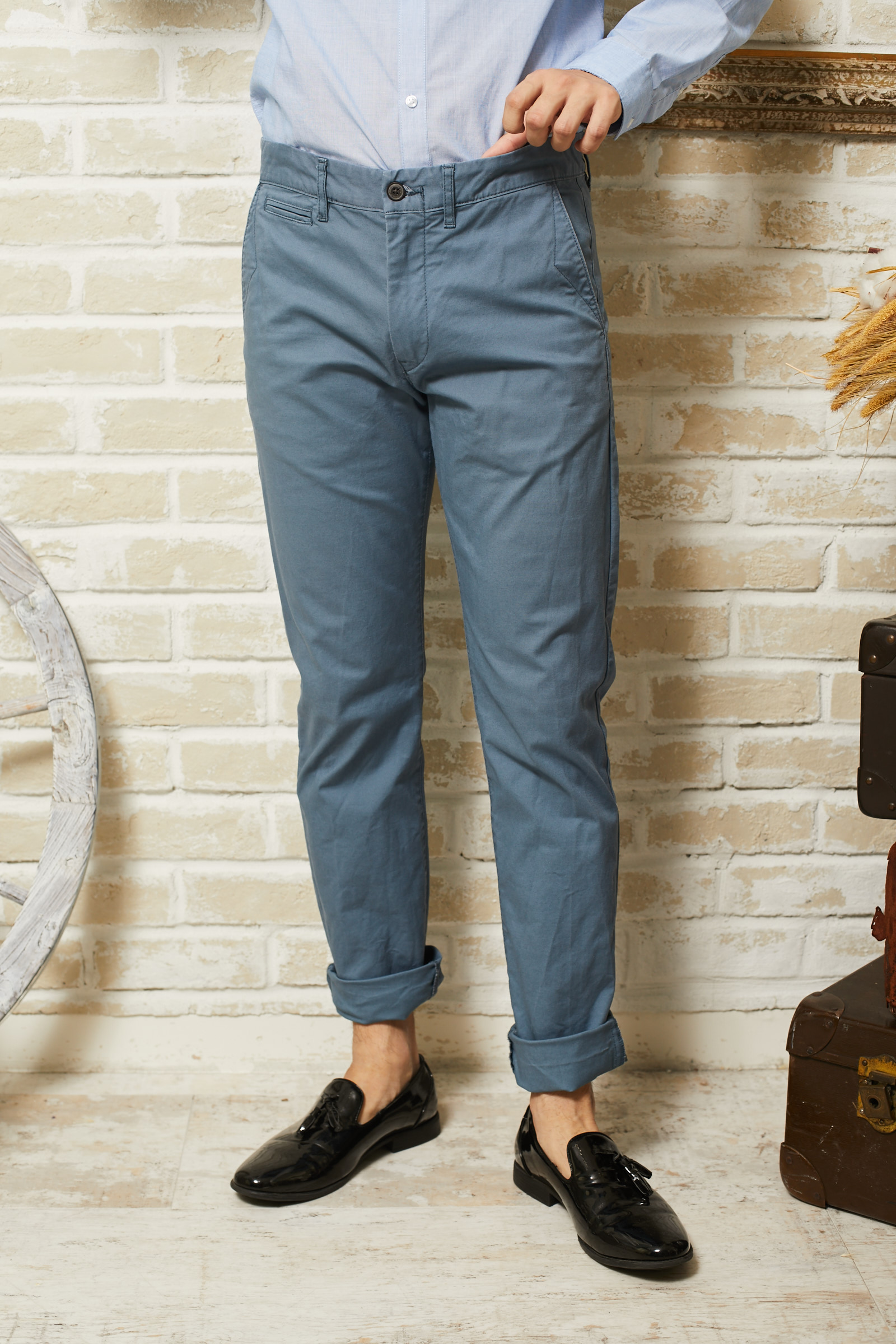 L.O.G.Gのスモーキーブルーのコットンパンツ 31