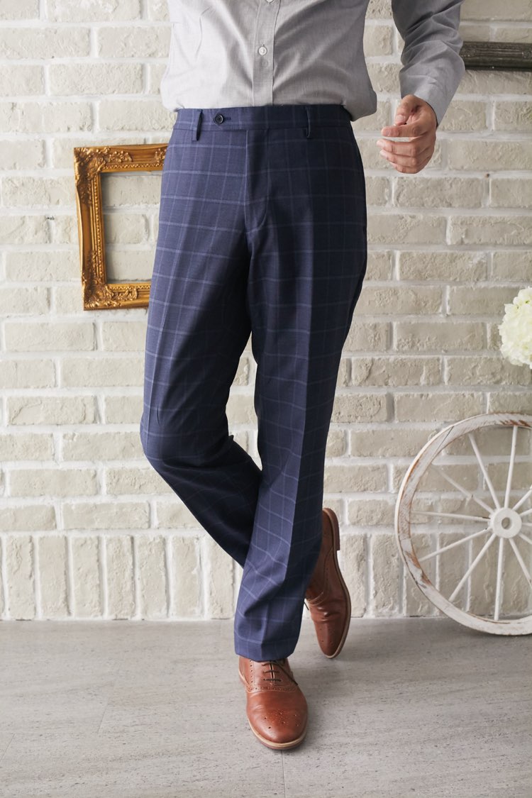 ARROWSブルー ウィンドゥ・ペンチェック柄パ...
