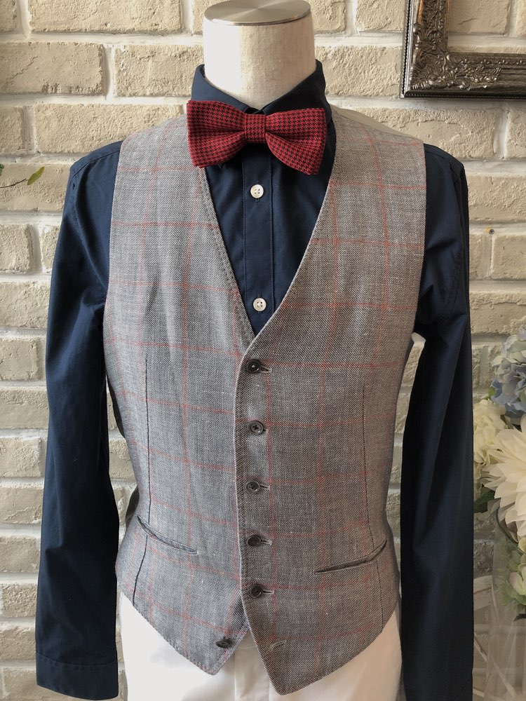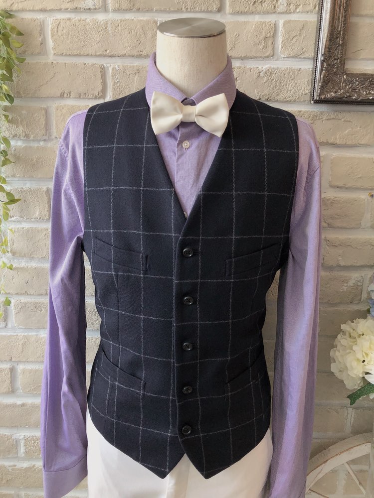 TAKEO KIKUCHI ネイビーブロックチェックベスト