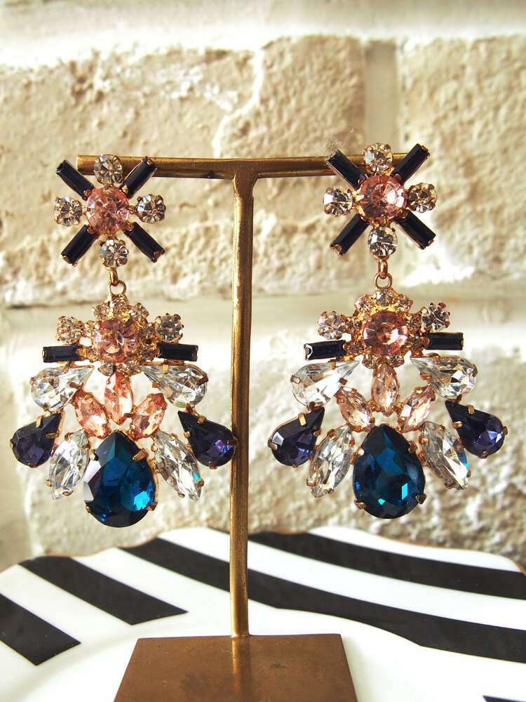 ロイヤルブルービジューエンベリッシュドドロップピ...