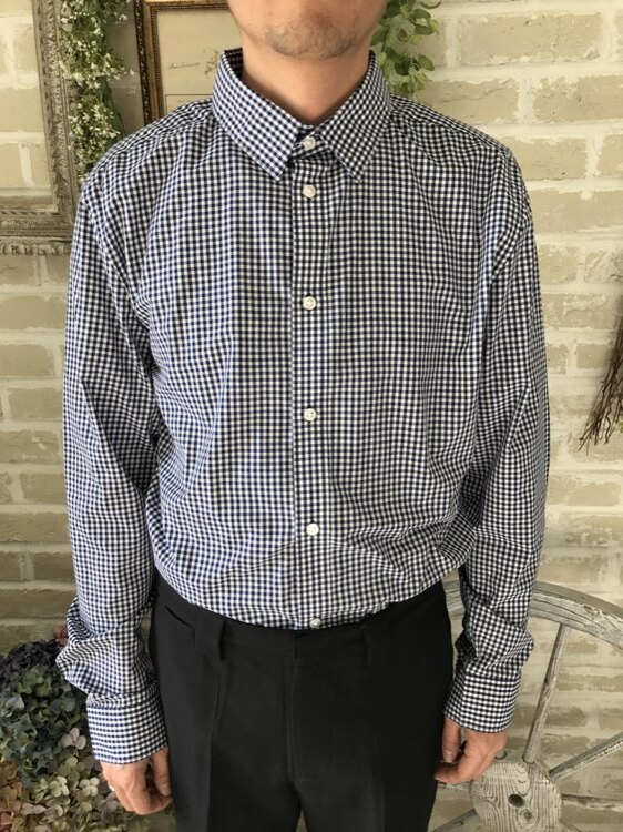 L 黒白ギンガムチェックボタンダウンシャツ