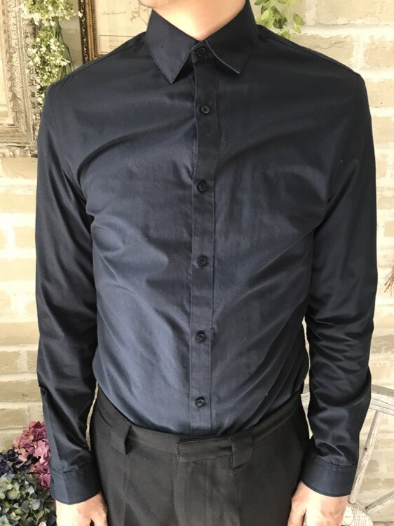 L ブラック白水玉シャツ