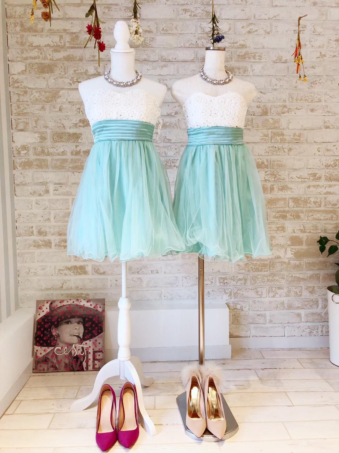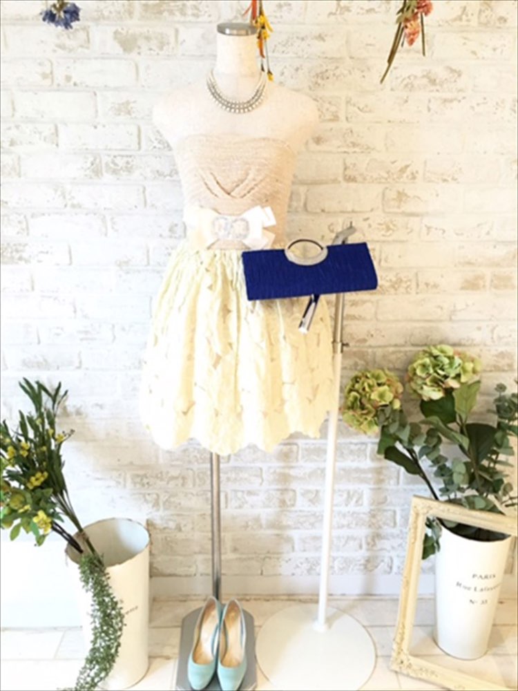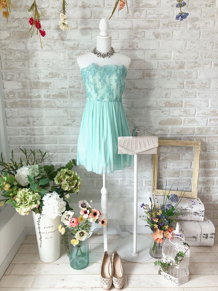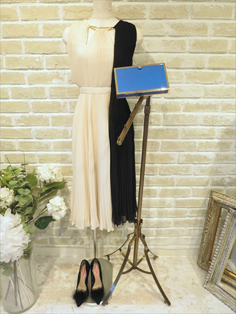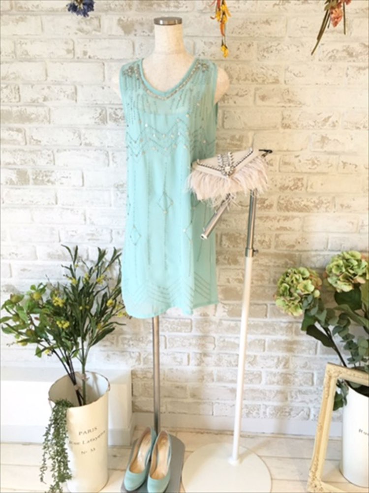 ベビーピンクのVカットウエスト切り替えノースリーブドレス