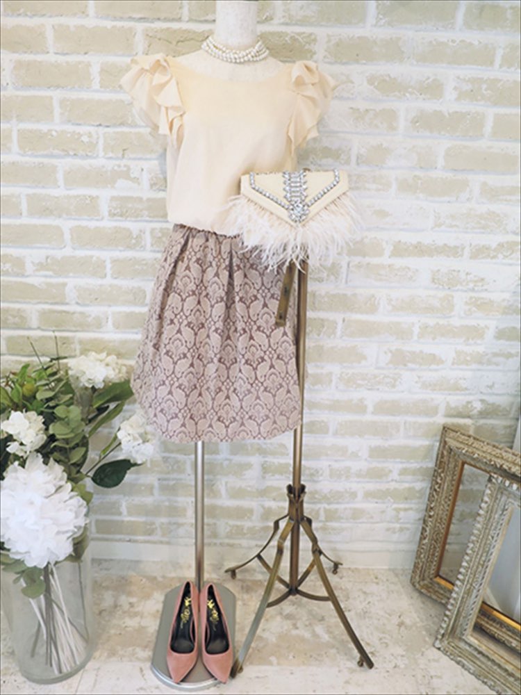 ベビーピンクのVカットウエスト切り替えノースリー...