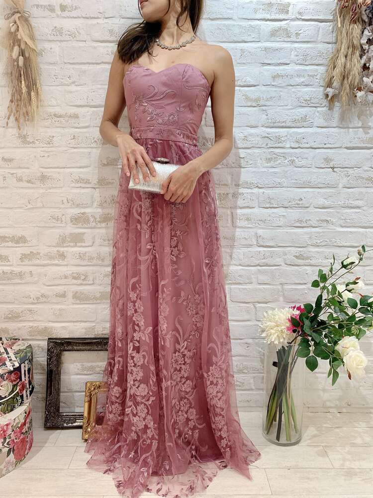 総刺繍オーバーチュールロングベアドレス(モーブ)