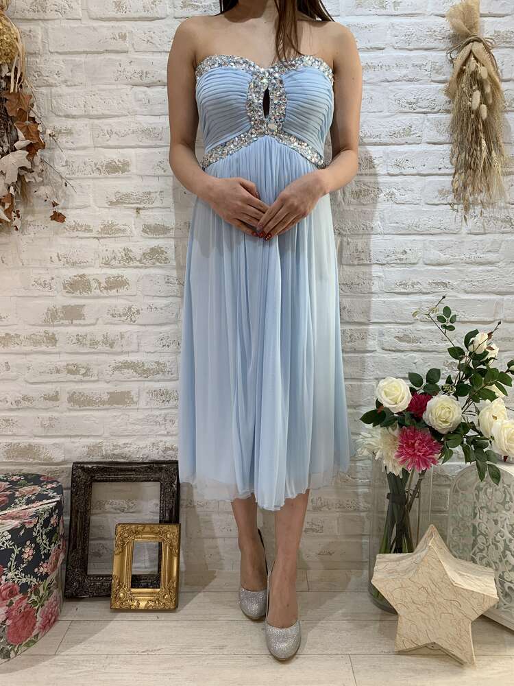 ウエストビジューラインロングベアドレス(ブルーグ...