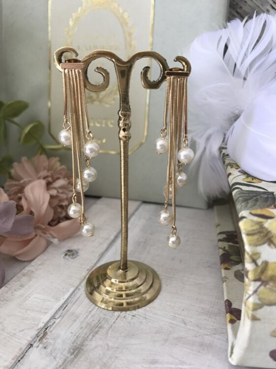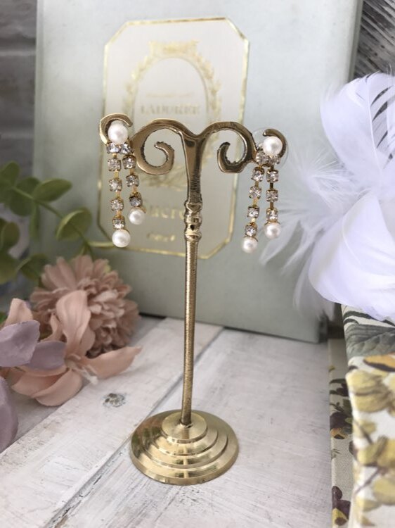 ゴールドチューリップ型ビジューパール付ドロップピ...