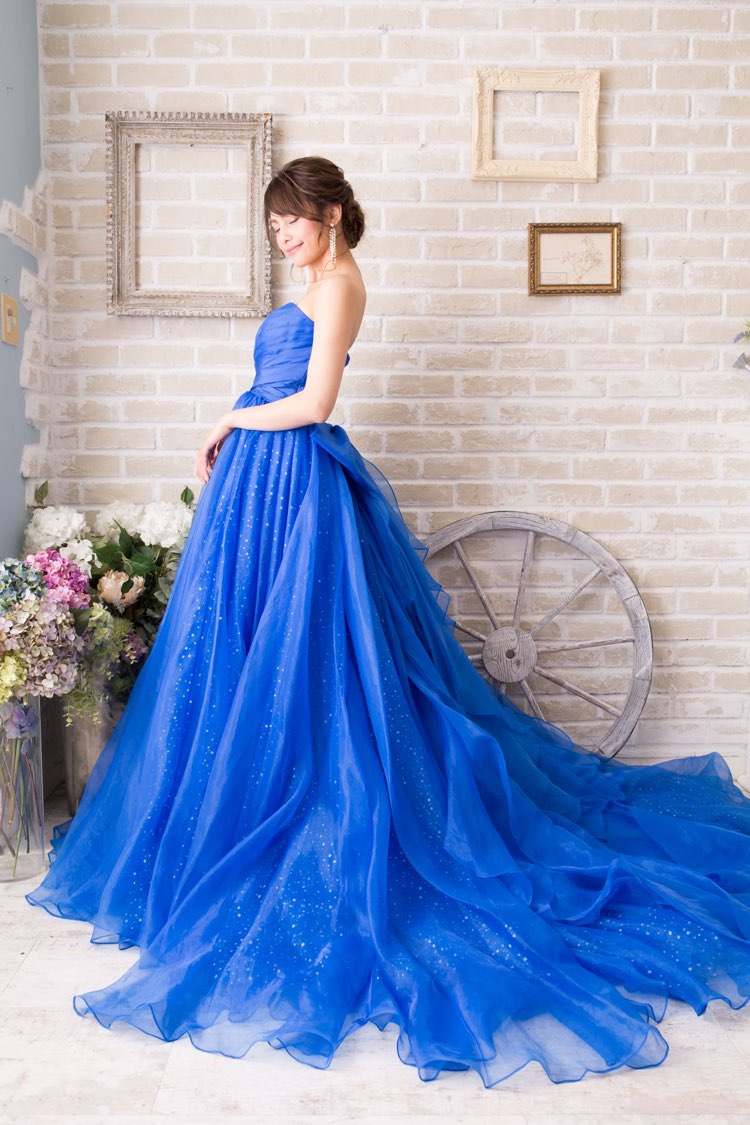 ブルーキラキラシルバーラメAラインボリュームベアドレス
