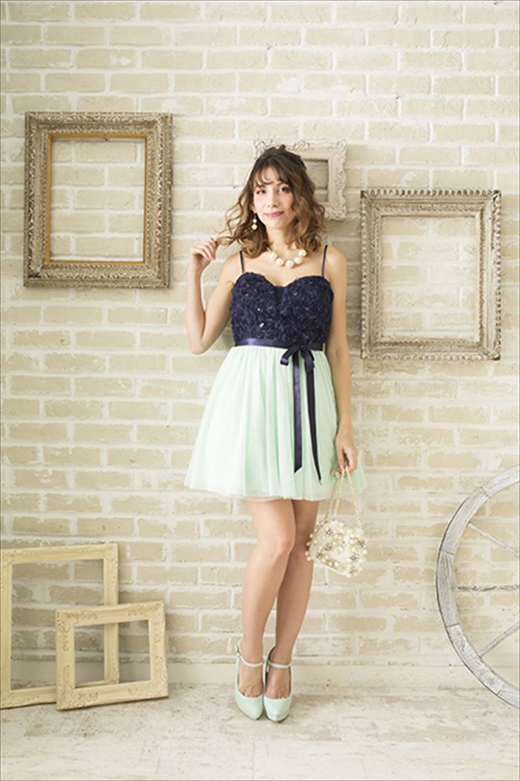 ブラック×ミントグリーン 小花柄レースベアドレス