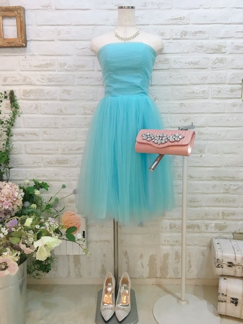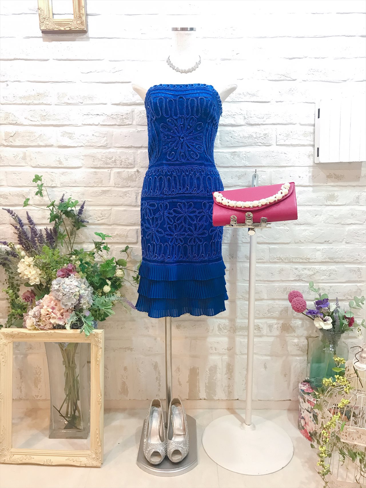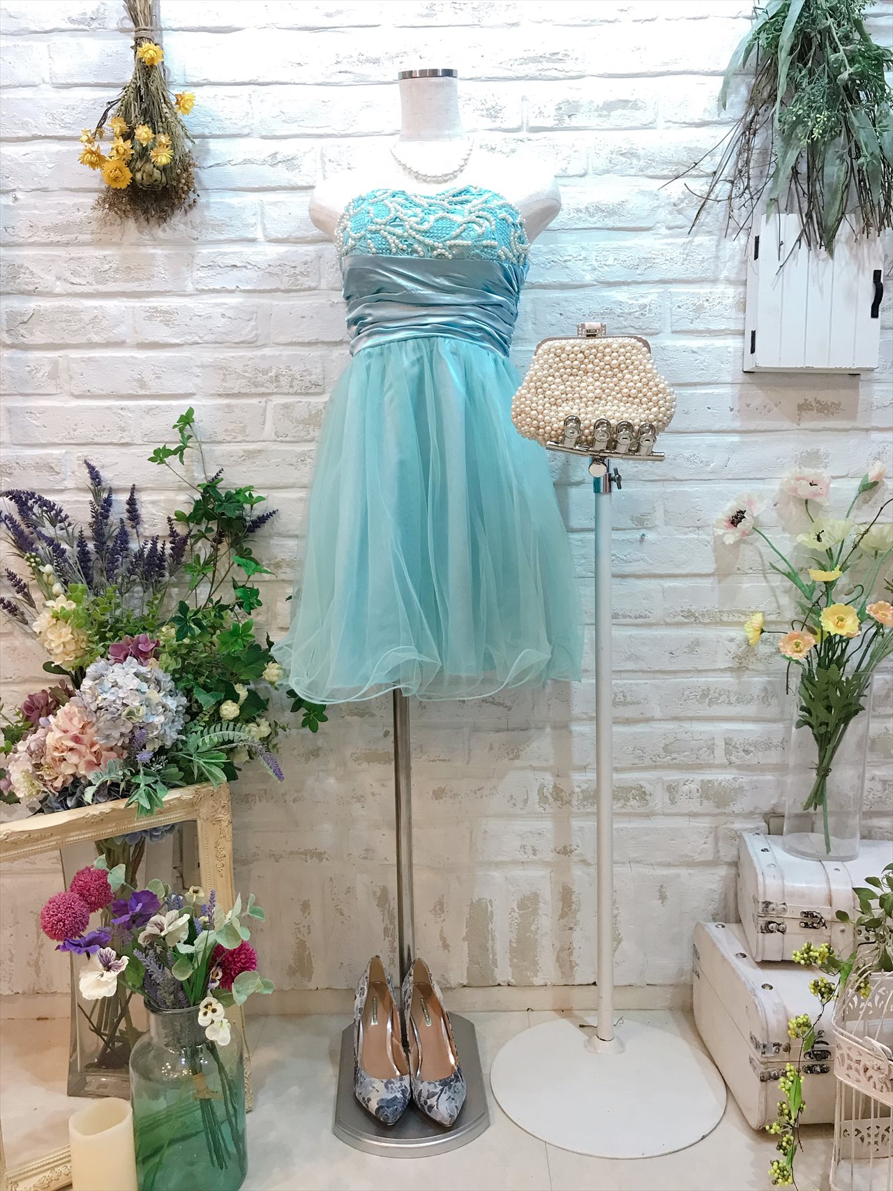 ターコイズブルー胸元お花ウェストビジュミニベアド...