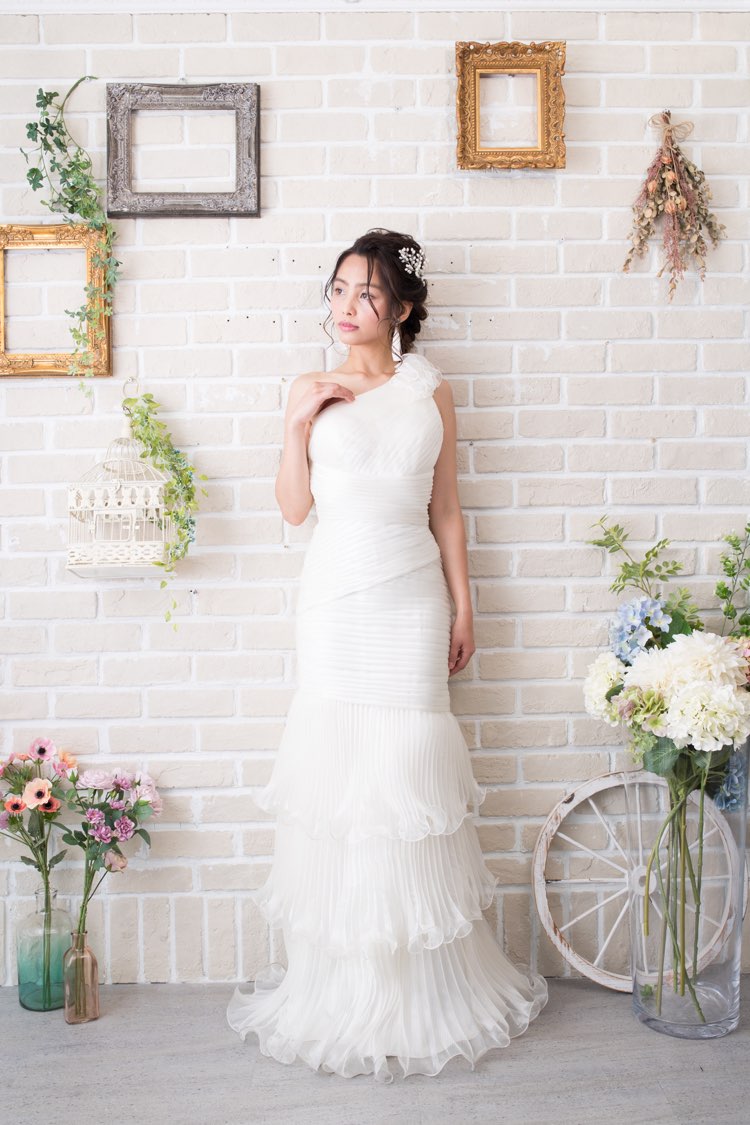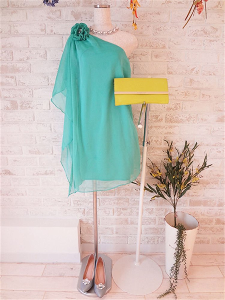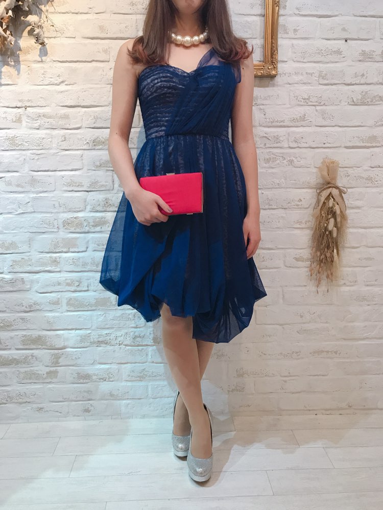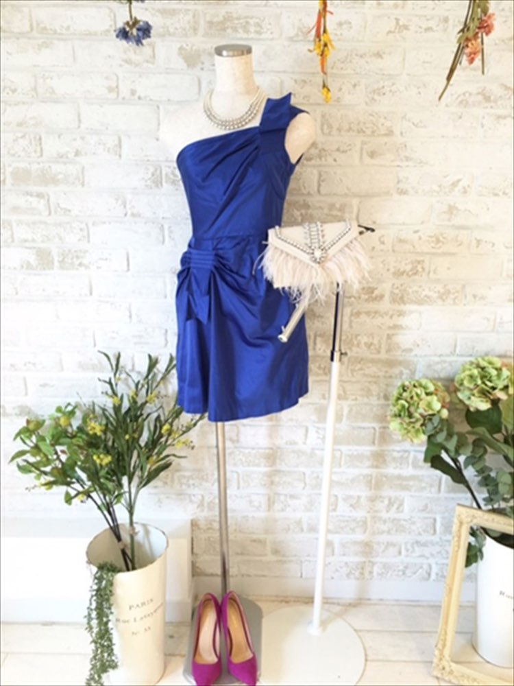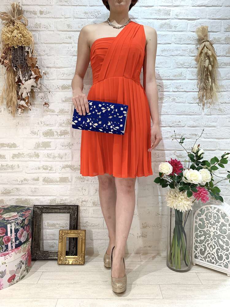 黒・パープル・赤のワンショルダーグラデーションドレス