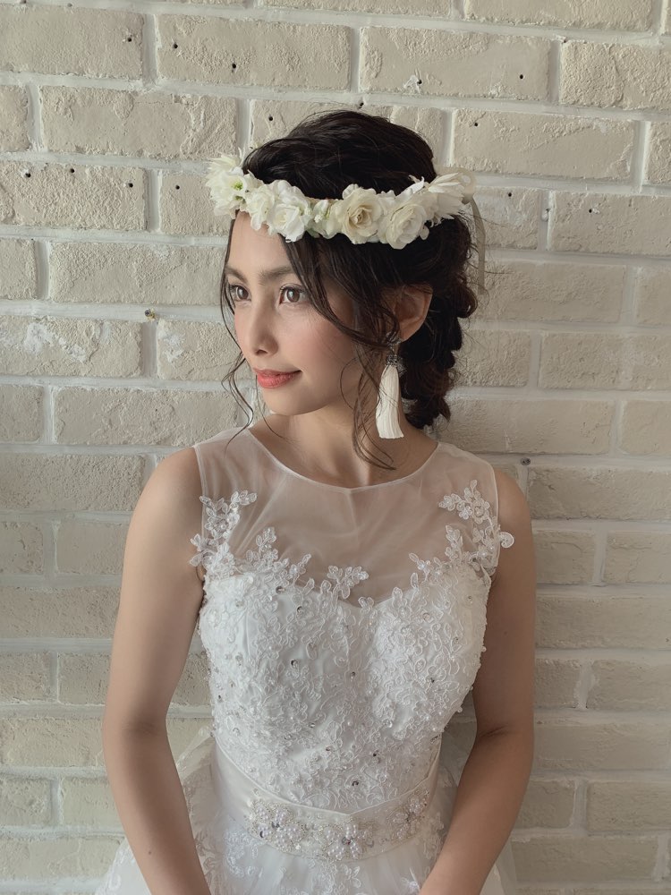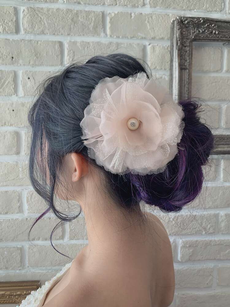 ホワイト×ラベンダー大きめホワイトヘッドアクセ