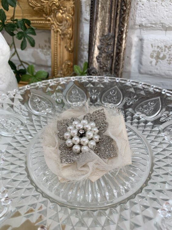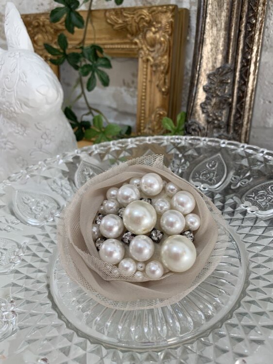 中にフェザーと3本ストーン付ホワイトコサージュ