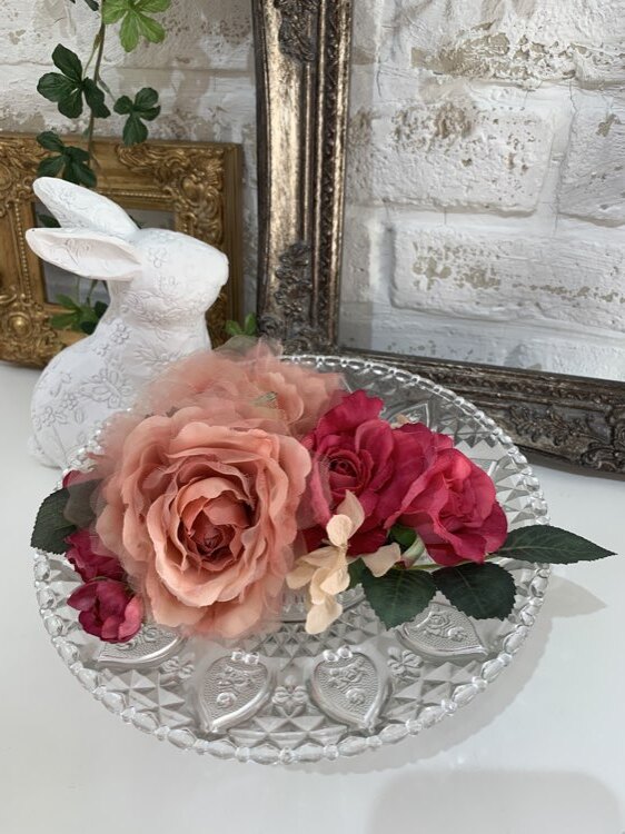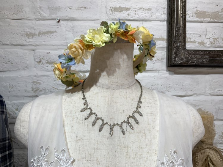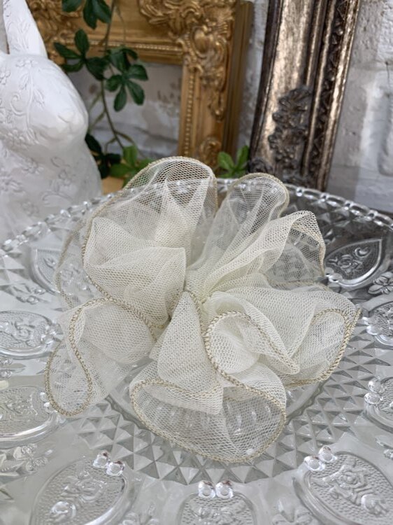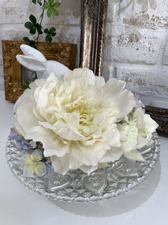 ホワイト×グリーン大きめフラワーヘッドアクセ