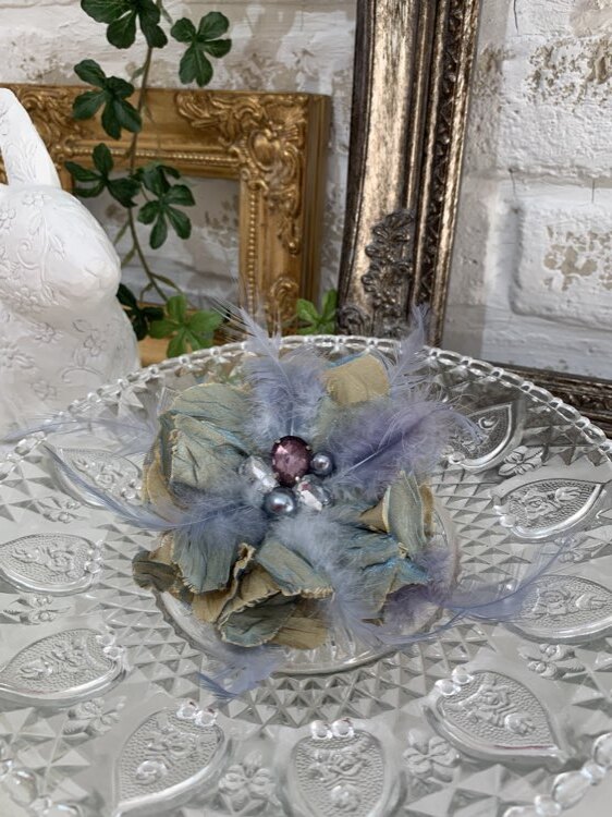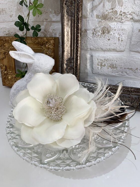 ブラウンフェザー付ホワイトフラワーコサージュ