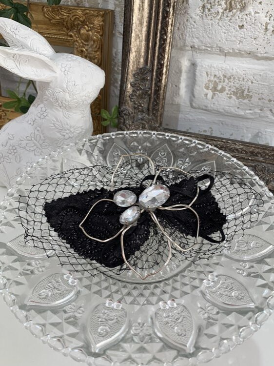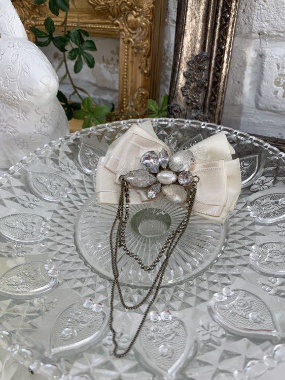 ホワイトリボン×ビジュー×チェーンヘッドアクセ